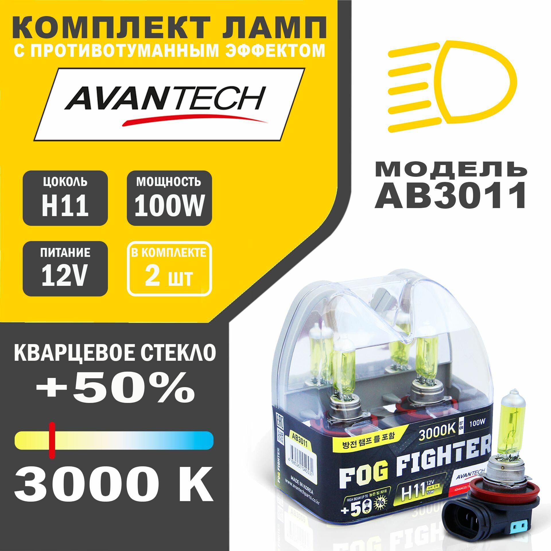 AVANTECH AVANTECH Лампа H11 12V 55W (100W) 3000K (ярко-желтый свет) FOG FIGHTER, комплект 2 шт. AVANTECH AB3011