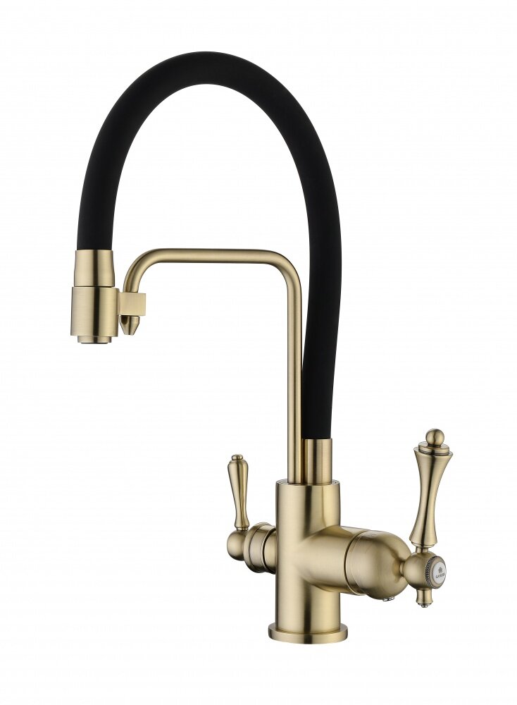 Кухонный кран с гибким изливом и под. фильтр Ganzer GZ77025-D*C бронза/черный