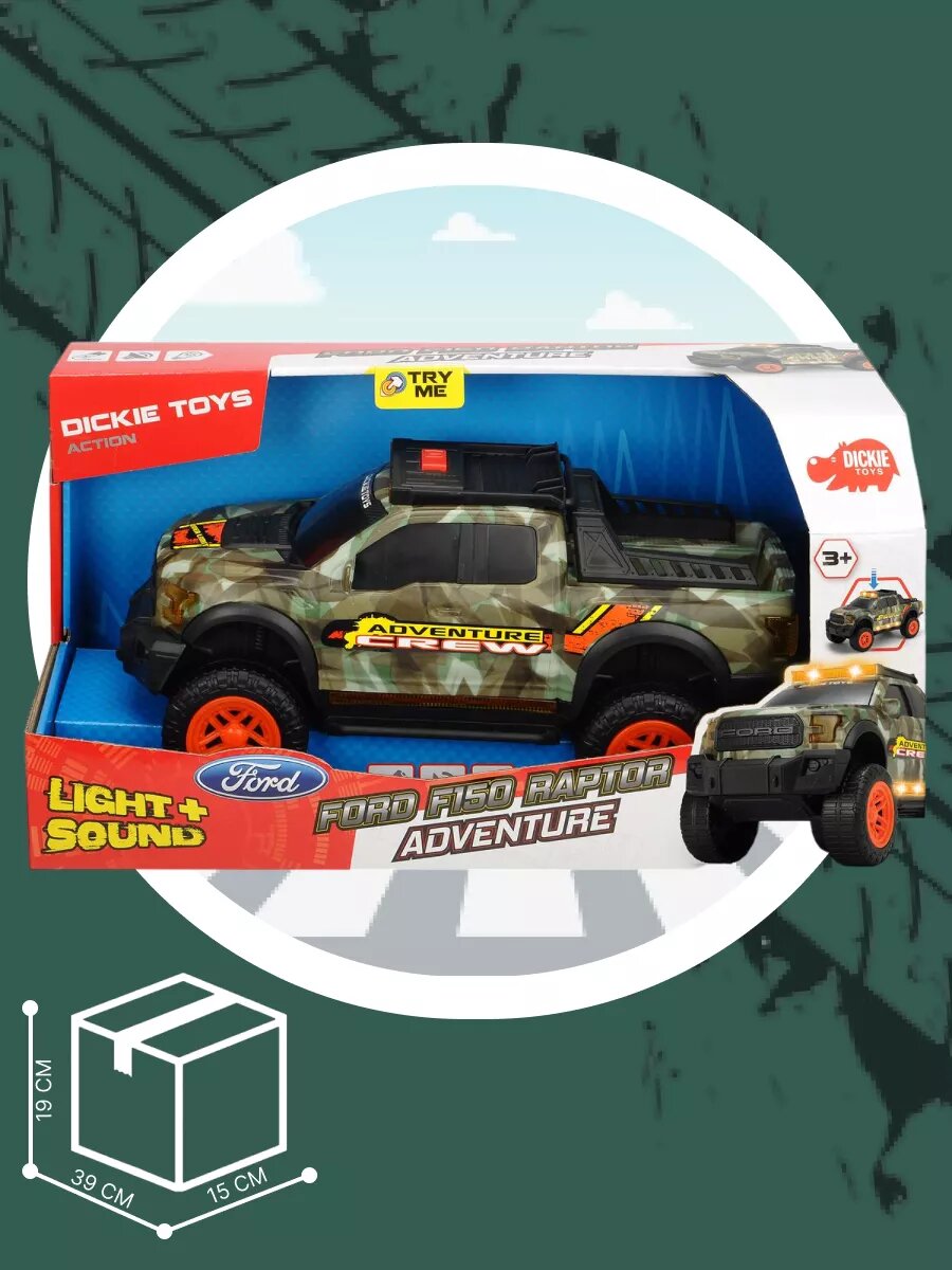 Купить Машина Dickie Toys "Adventure Ford F150 Raptor", инерционная, звуковые и световые эффекты, 33 см