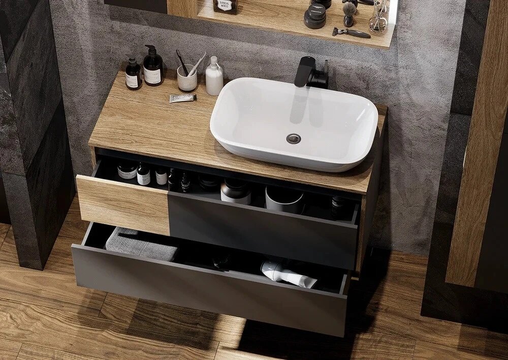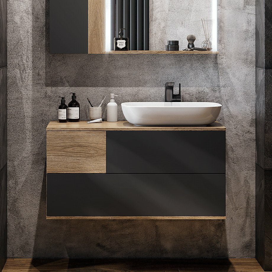 Тумба под раковину в ванную AQUATON 1A247701LQX60 Лофт Урбан 100 серый графит, дуб орегон