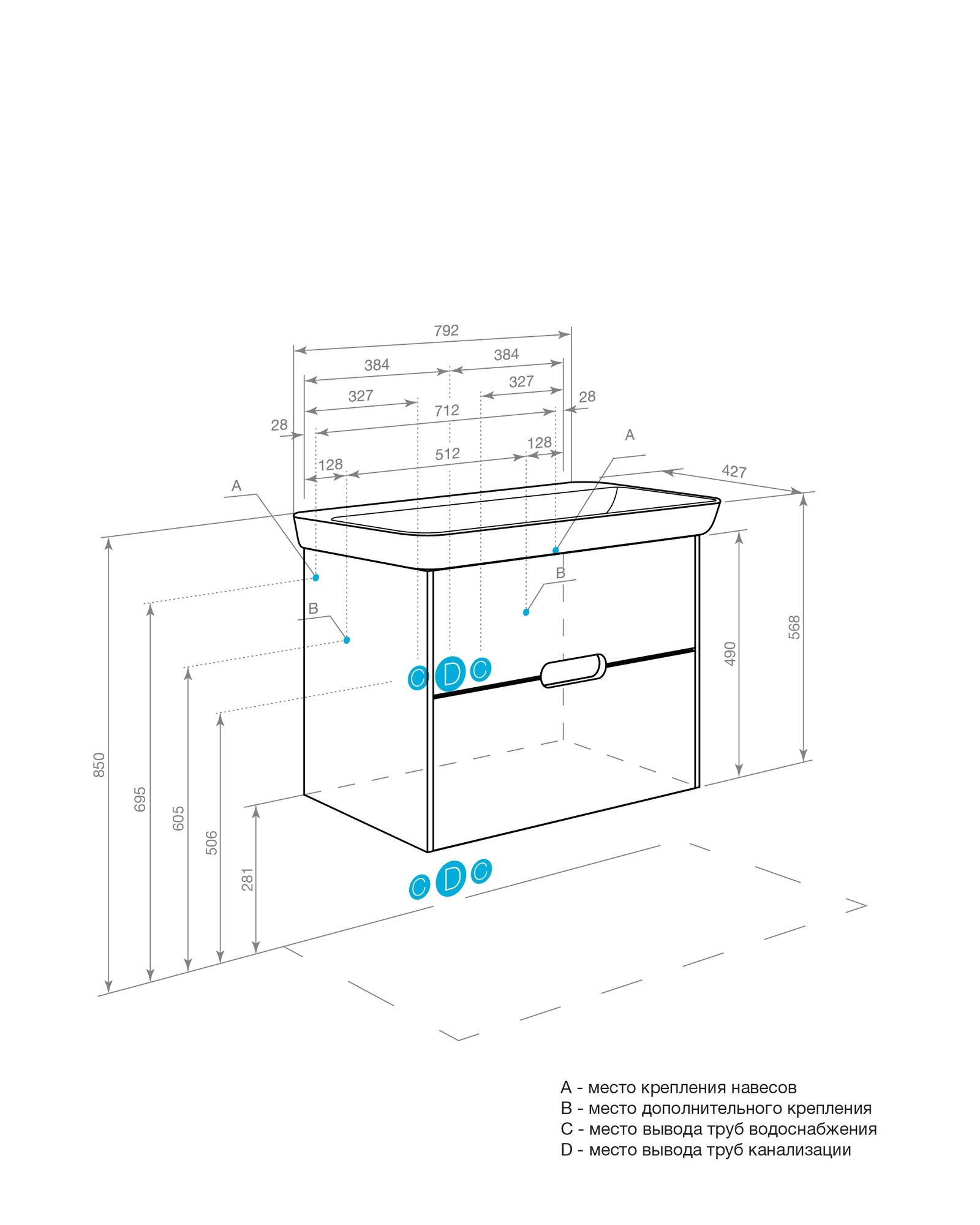 | Комплектация | 2 выдвижных ящика; без раковины и смесителя |