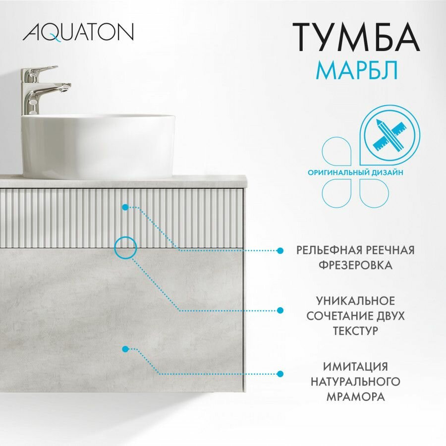 Тумба под раковину AQUATON Марбл 60 слэйт, белый матовый 1A276101MH4C0