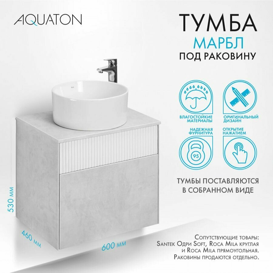 Тумба под раковину AQUATON Марбл 60 слэйт, белый матовый 1A276101MH4C0