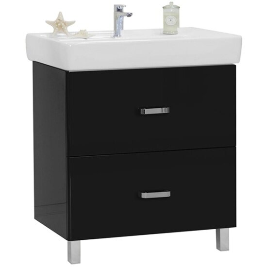Купить Тумба под раковину Aquaton Америна 80 Н 1A169401AM950 черный глянец, напольная, 2 ящика
