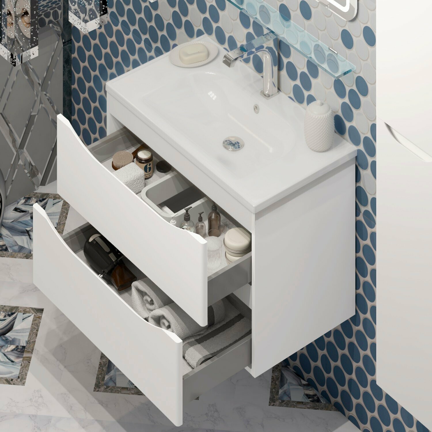Тумба с раковиной для ванной Кристалл 50 белая.