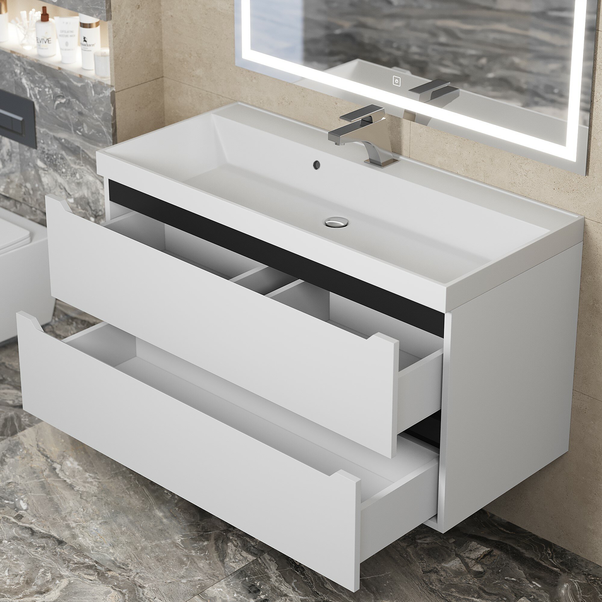 Тумба под раковину для ванной комнаты Uperwood Tanos подвесная 100 см, белая/графит
