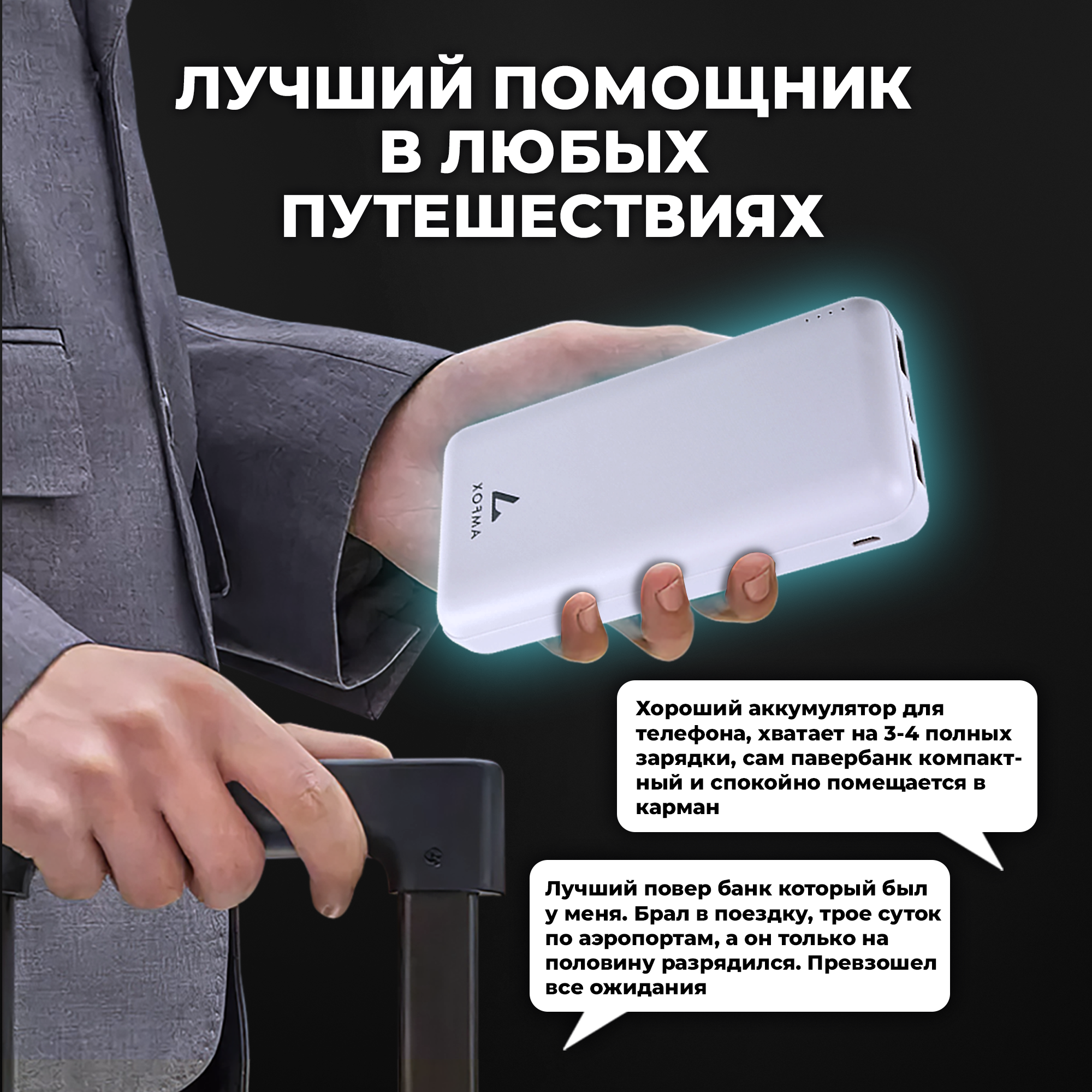 Повербанк для айфона 10000 mAh, powerbank для телефона, внешний аккумулятор, пауэрбанк для xiaomi, портативный, белый