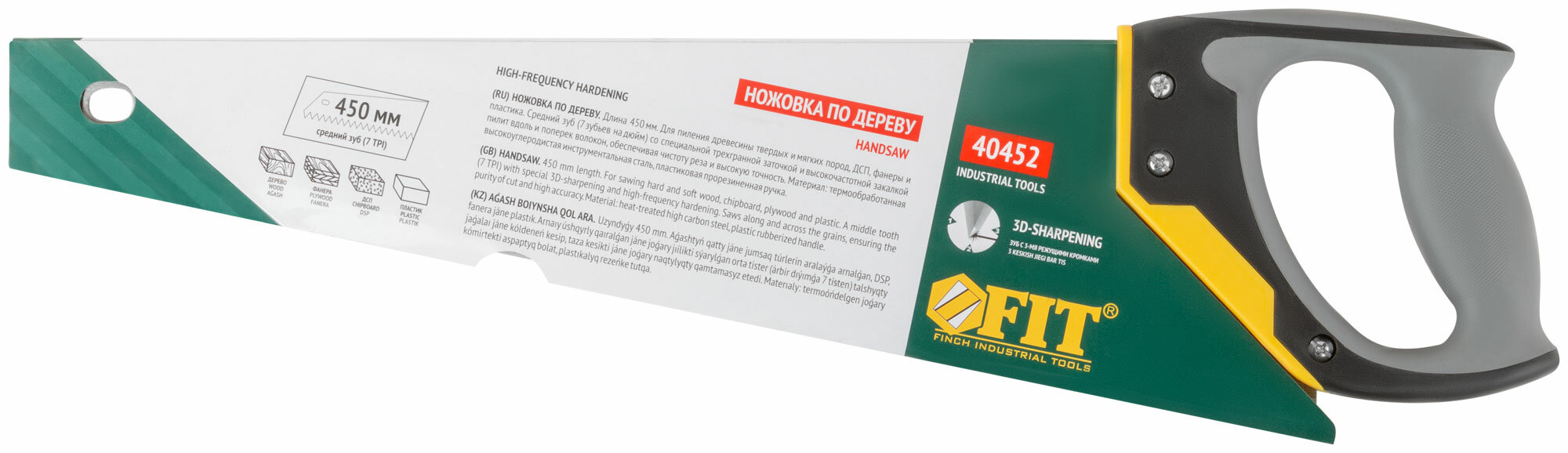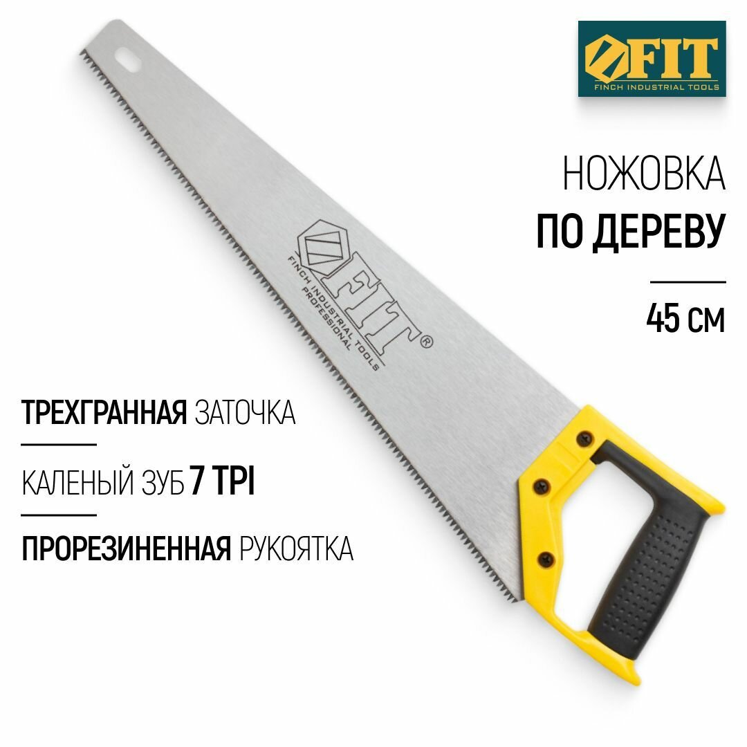 Ножовка по дереву FIT Профи 450 мм каленая, 3D-заточка 40445