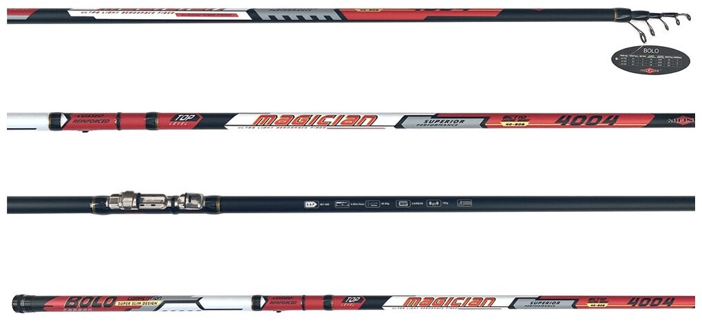 Ниже Вы можете прочитать отзывы на Удилище болонское Magician L Bolo 400 4 метра, ознакомится с подробными характеристиками, посмотреть интересные обзоры и фотографии на Удилище болонское Magician L Bolo 400 4 метра.