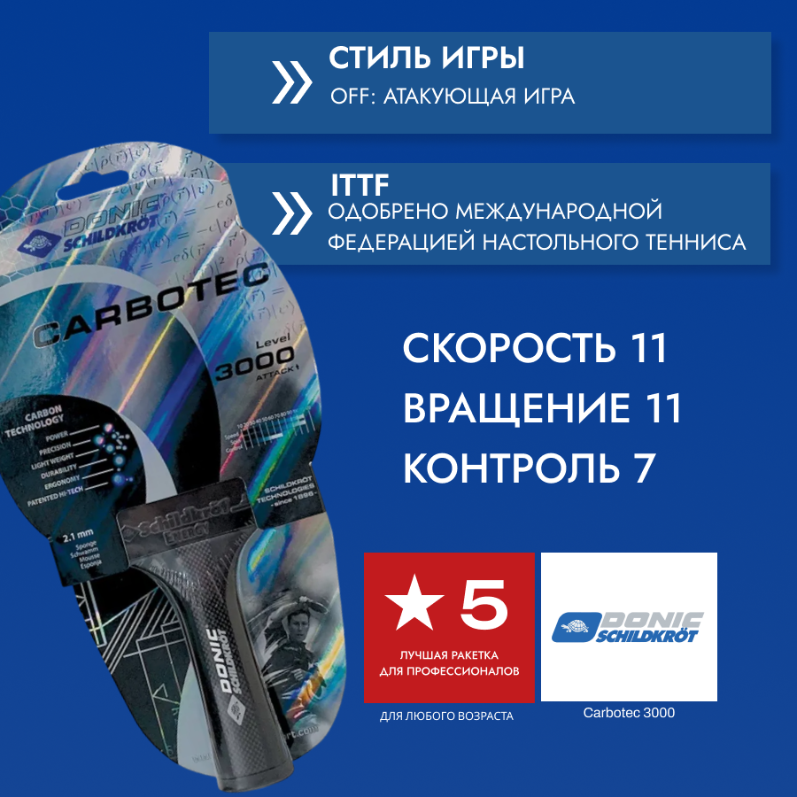 Купить Ракетка для настольного тенниса Donic-Schildkröt Carbotec 3000, carbon