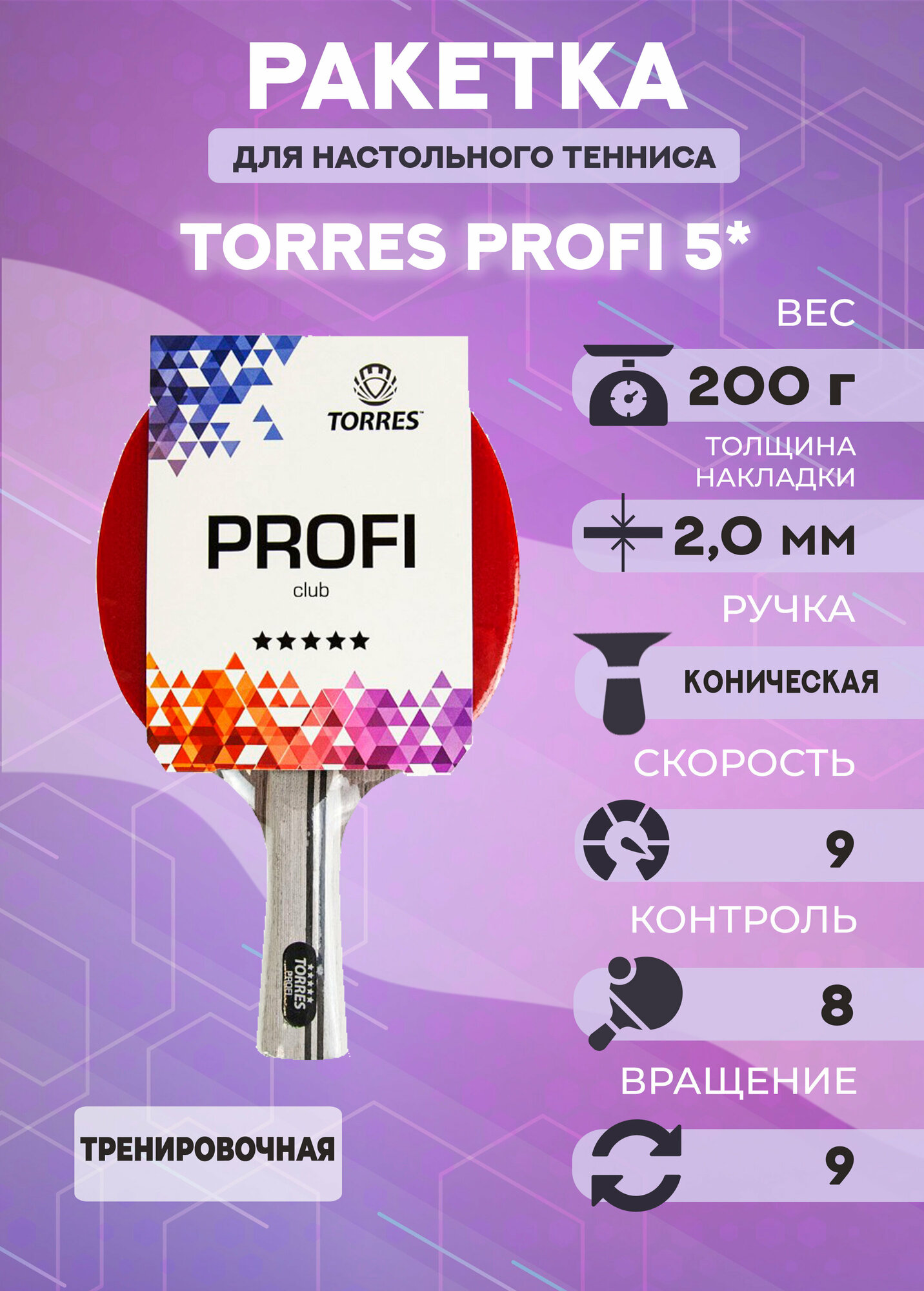 Ракетка для настольного тенниса TORRES Profi 5* TT21009, для спортсменов