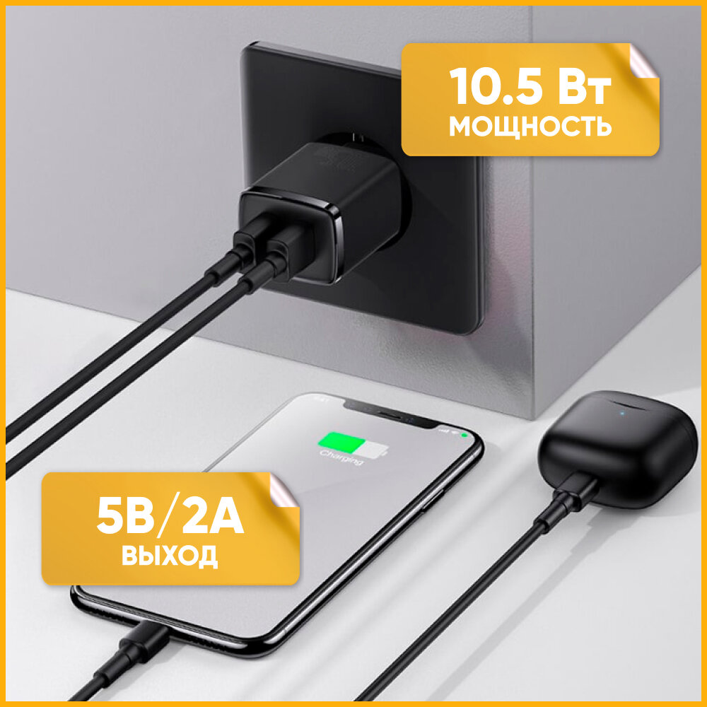 Сетевое зарядное устройство Baseus Compact 10.5W 2 USB,черный / Адаптер питания сетевой USB-A / Блок питания для телефона, быстрая зарядка / Переходник для розетки