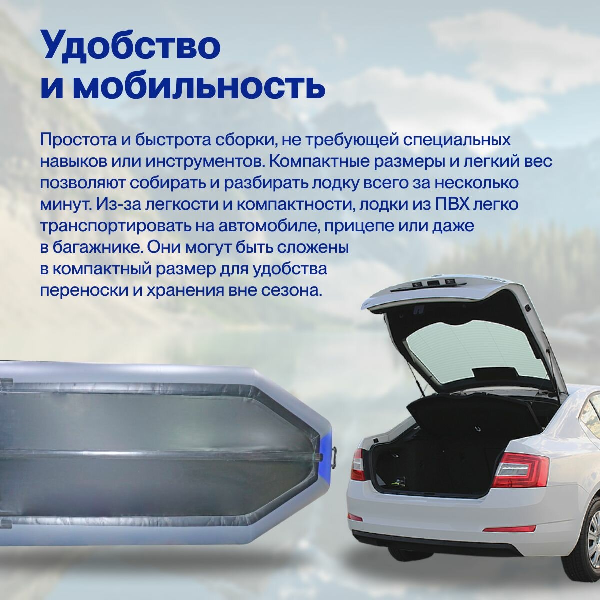 Лодка ПВХ под мотор надувная ЛП 300 СК Лайт с жёстким полом и килем для рыбалки, серо-синяя