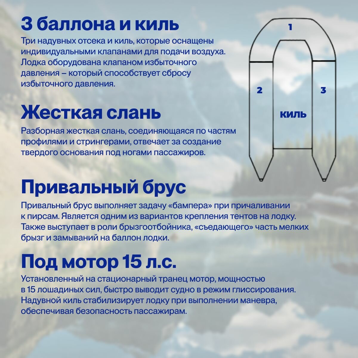СохранитьЛодка ПВХ под мотор надувная Муссон 300 СК Лайт с жёстким полом и килем для рыбалки, серо-синяя интересное: