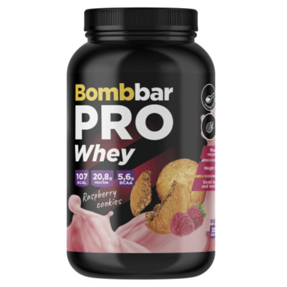 Bombbar Pro Whey Protein Протеиновый коктейль без сахара "Малиновое печенье", 900 г