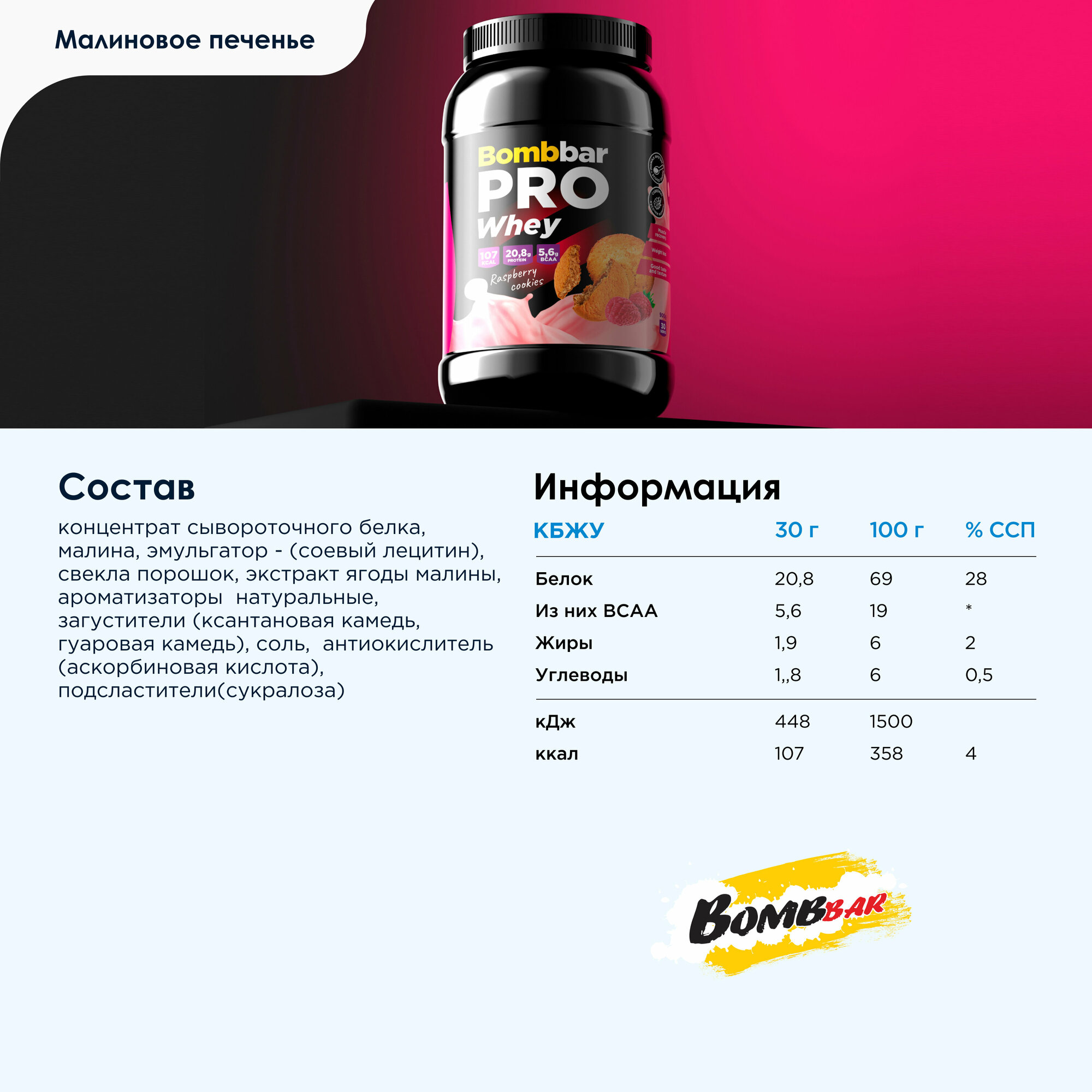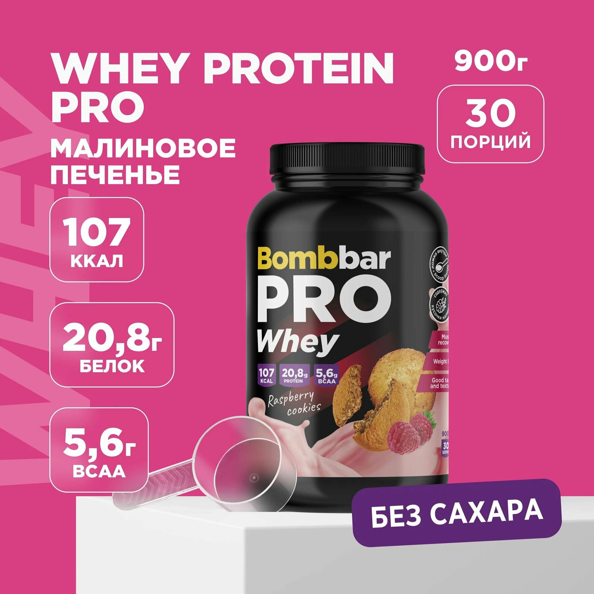 Bombbar Pro Сывороточный протеин без сахара Whey Protein "Малиновое печенье", 900 г