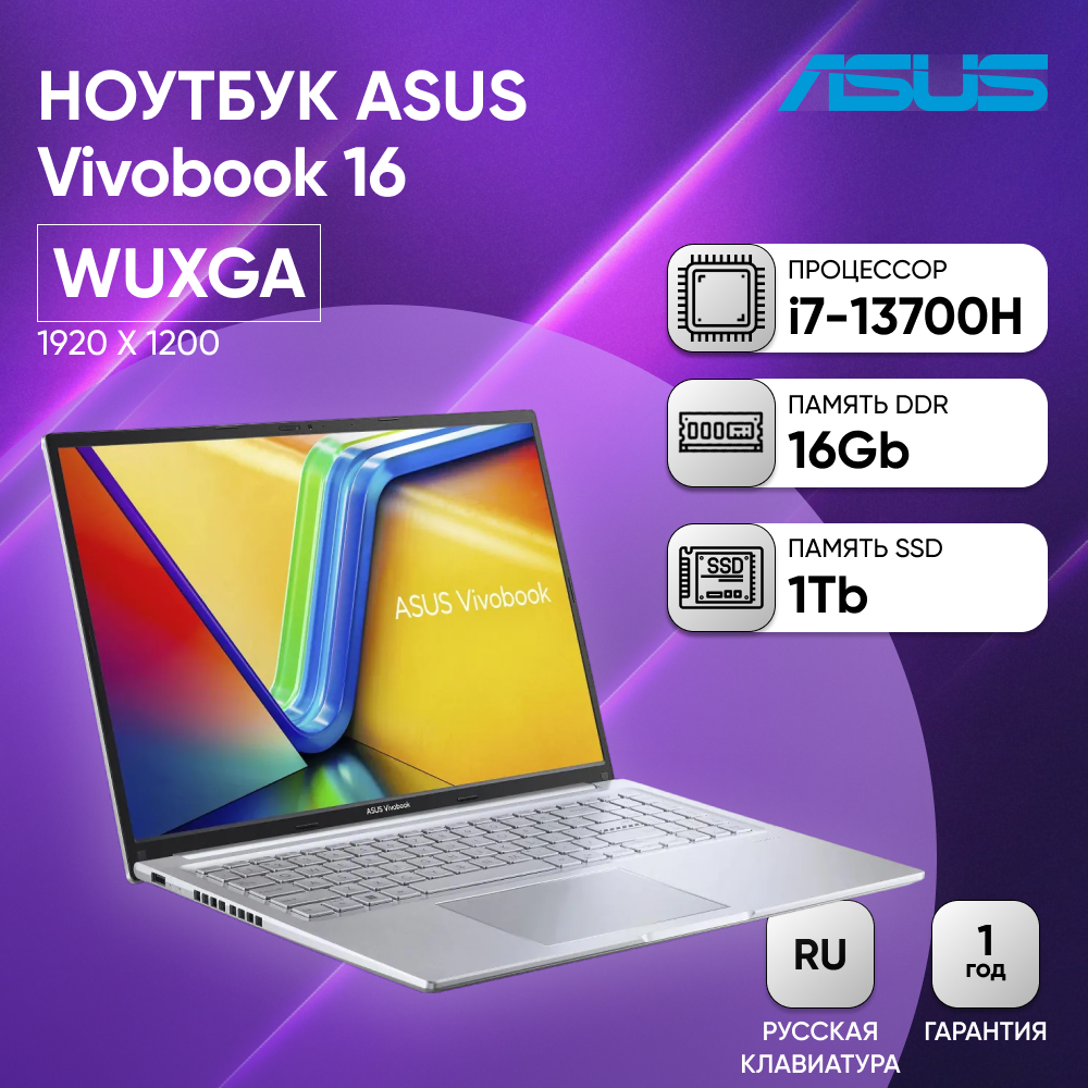 Купить ASUS VivoBook 16 X1605VA i7-13700H 16Gb SSD 1Tb Intel UHD Graphics 16 WUXGA IPS 42Вт*ч No OS Серебристый X1605VA-MB688 90NB10N2-M00W90