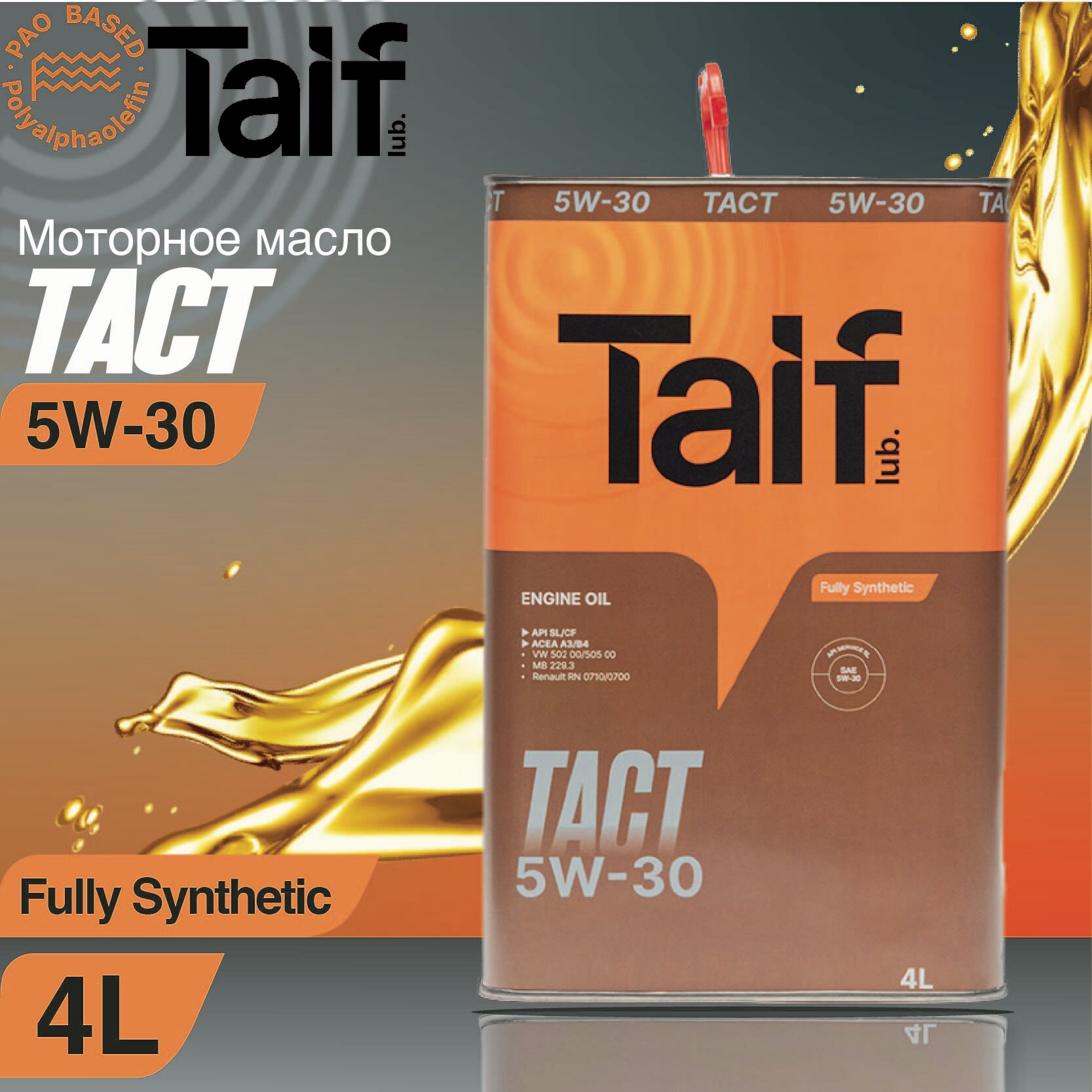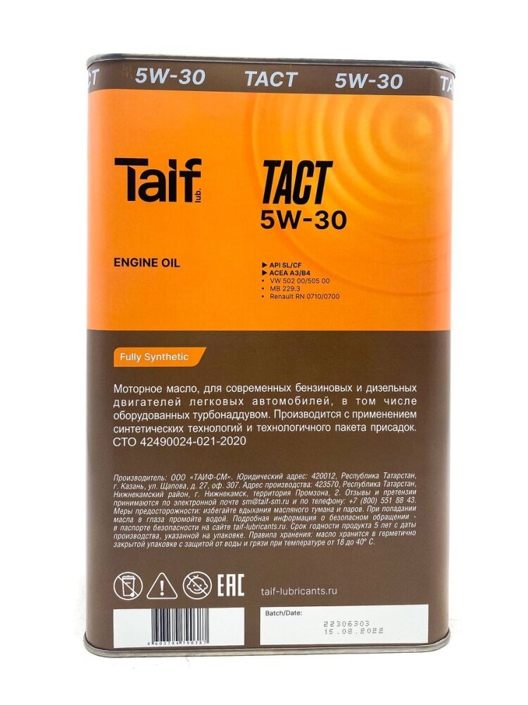 TAIF Lubricants Taif Масло Моторное Tact 5w-30, 4l Api Sl/Cf, Vw 502 00/505 00, Acea A3/B4, Mb 229.3, Renault Rn