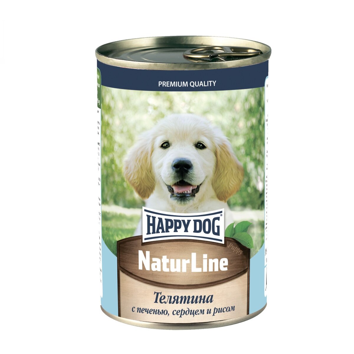 Консервы для щенков Happy Dog NatureLine (Телятина с печенью, сердцем и рисом), 410 гр. По 12 шт.