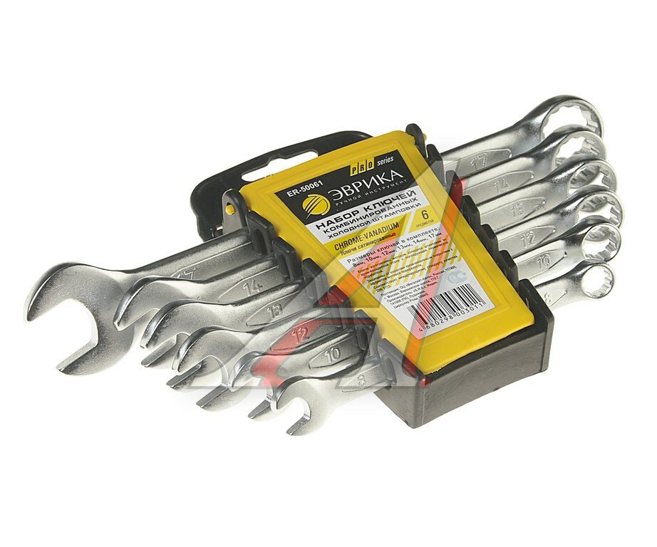 Эврика ER-50061 Набор ключей комбинированных 8-17мм 6 предметов в холдере CrV Pro эврика