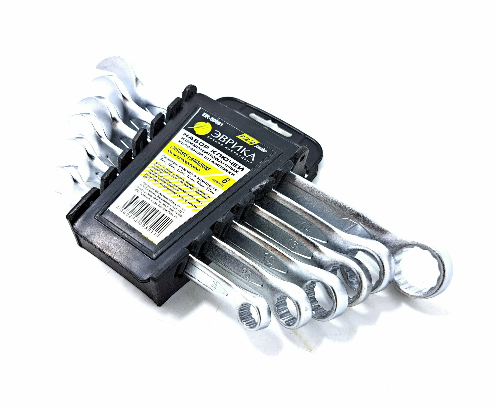 Набор ключей комбинированных 8-17мм 6 предметов в холдере CrV Pro, эврика ER50061 (1 шт.)