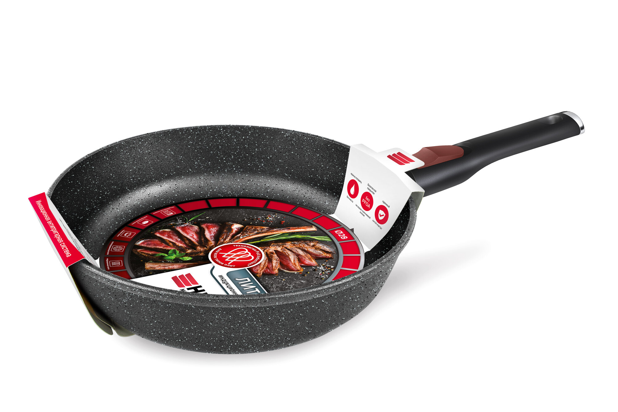 Купить Сковорода антипригарная литая 28см со съемной ручкой индукция Гранит ТМ НМП