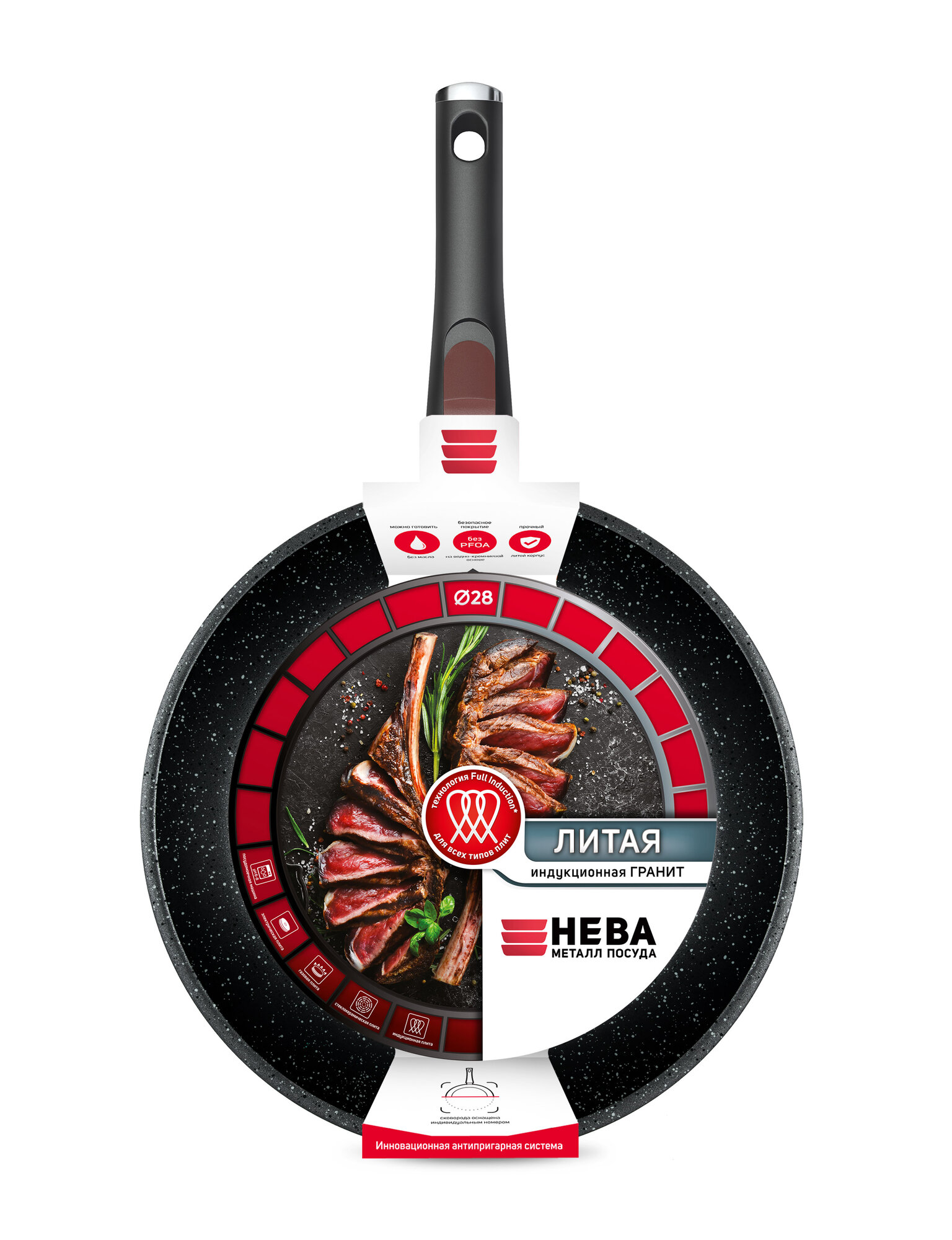 Нева Металл Посуда Сковорода 28 литая Индукция Гранит с/р L18028i