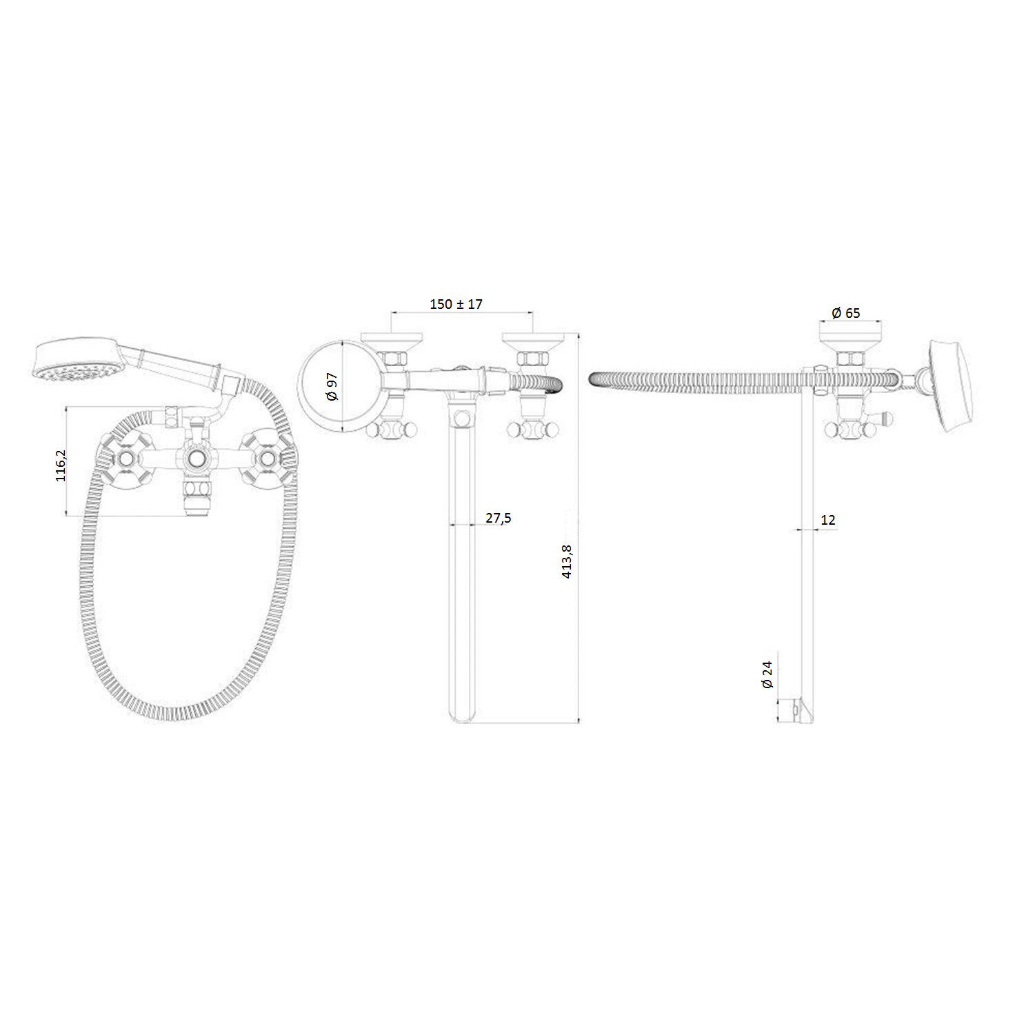 239500000 Retro смеситель для ванны/душа с длинным изливом, душ.гарнитуром, шт