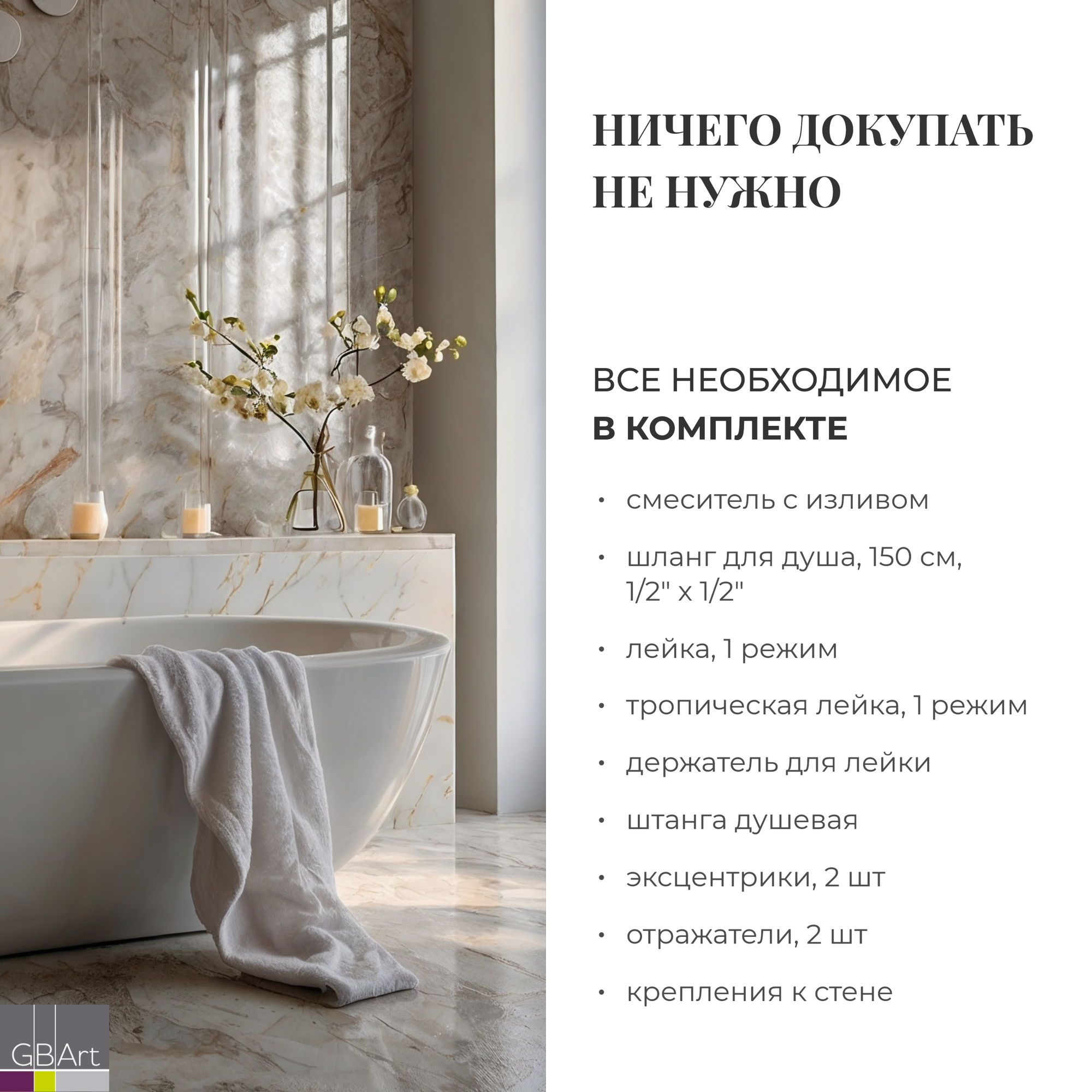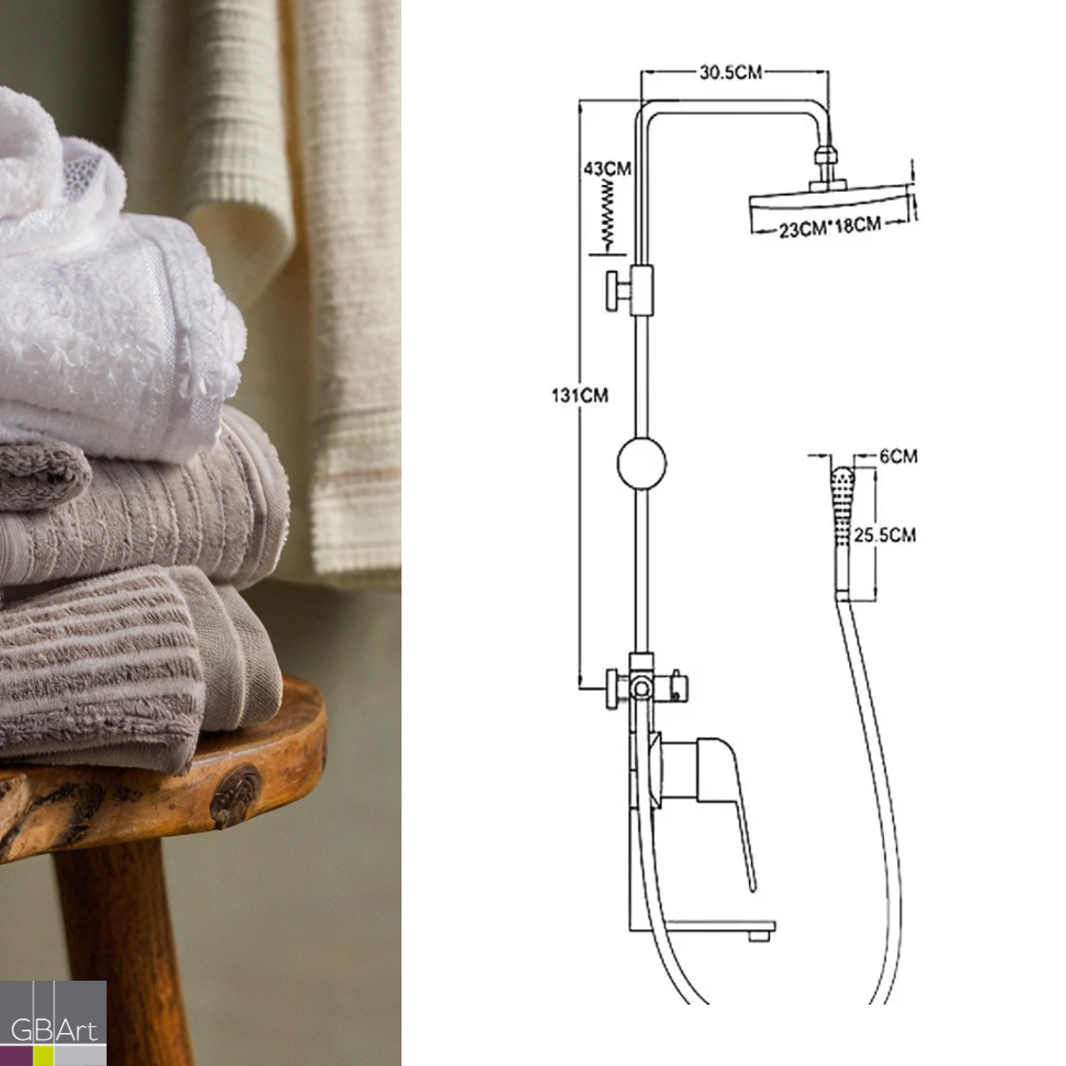 | Дополнительная информация | высота стойки для душа: 1310 мм; длина верхнего душа: 180 мм; ширина верхнего душа: 230 мм |