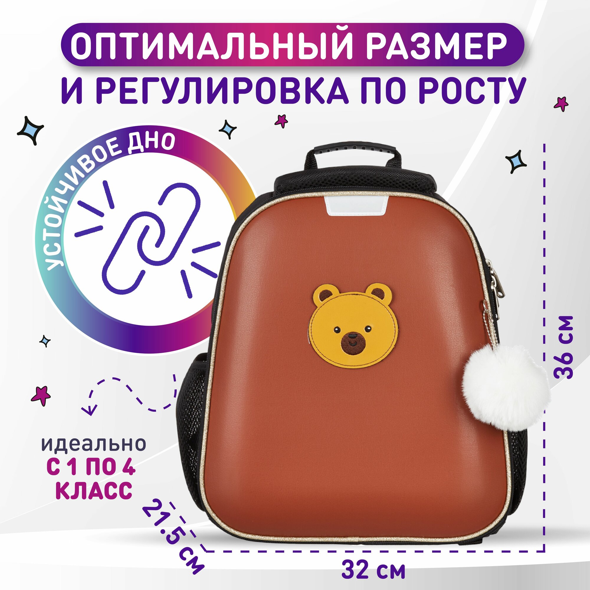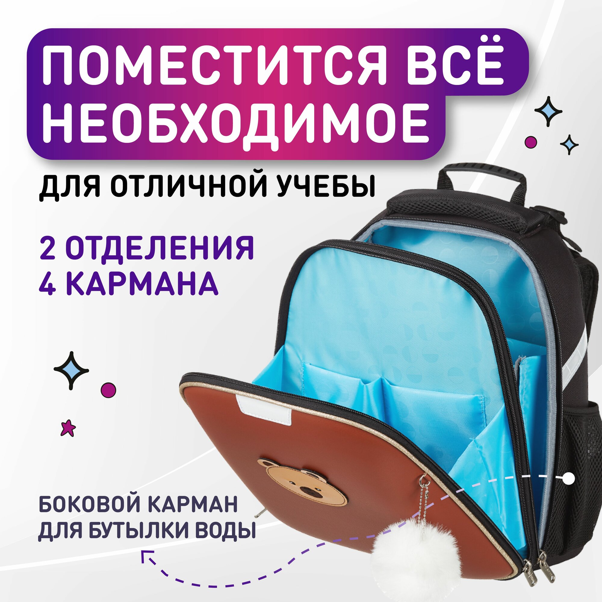 Рюкзак школьный №1 School Звезда, портфель анатомический для девочки, 2 отделения, 4 кармана