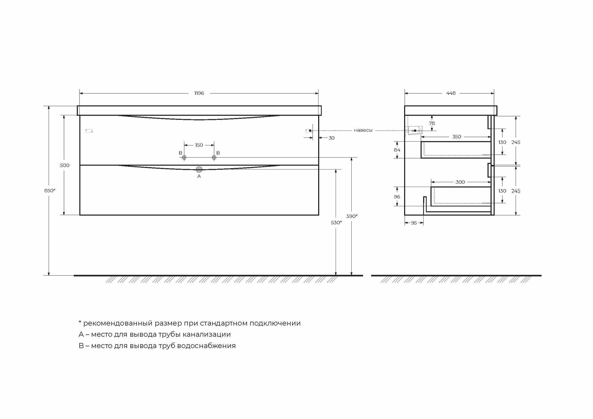 | Дополнительная информация | база оснащена доводчиками, ручки скрыты в плоскости фасада, раковина сифоном не комплектуется |