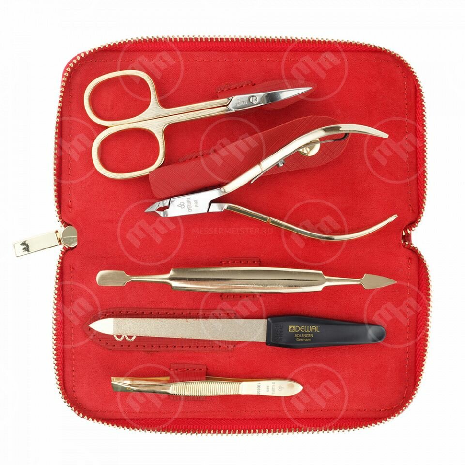 Маникюрный набор DEWAL, 5пр. Футляр: натуральная кожа, цвет красный, 902RED