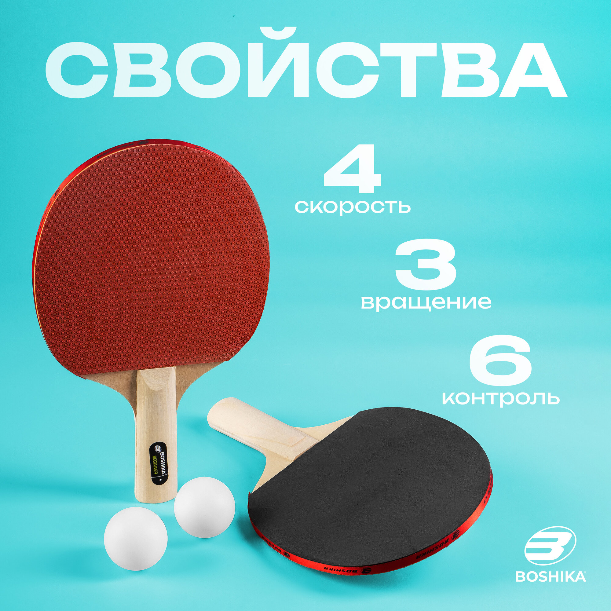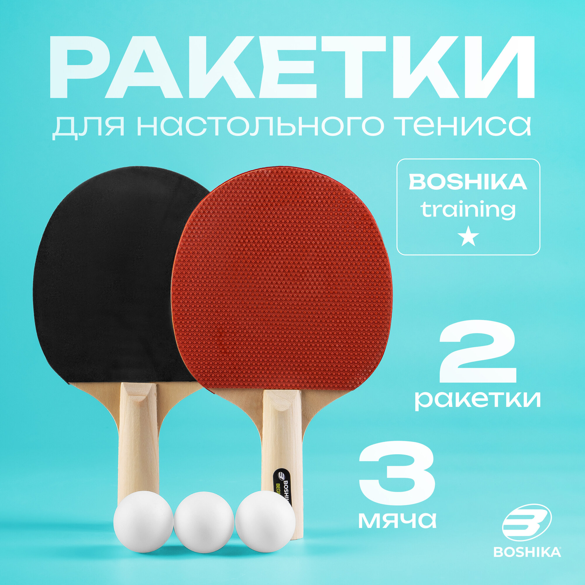 Набор для настольного тенниса BOSHIKA Training: 2 ракетки, 3 мяча