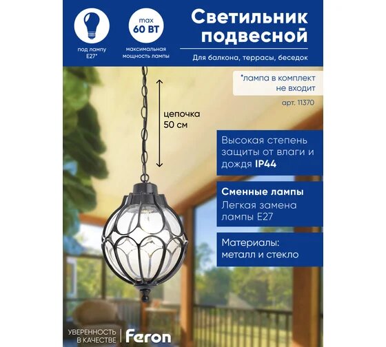 Купить Светильник садово-парковый Feron PL3805 круглый на цепочке 60W 230V E27, черный (06345)