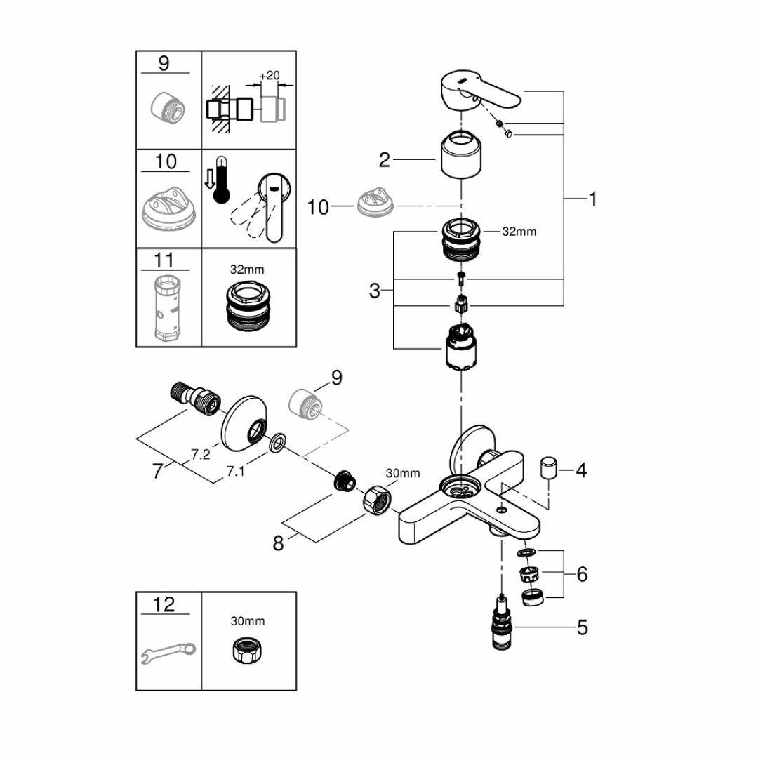 Смеситель однорычажный для ванны, GROHE BauEdge, хром, (23605000)