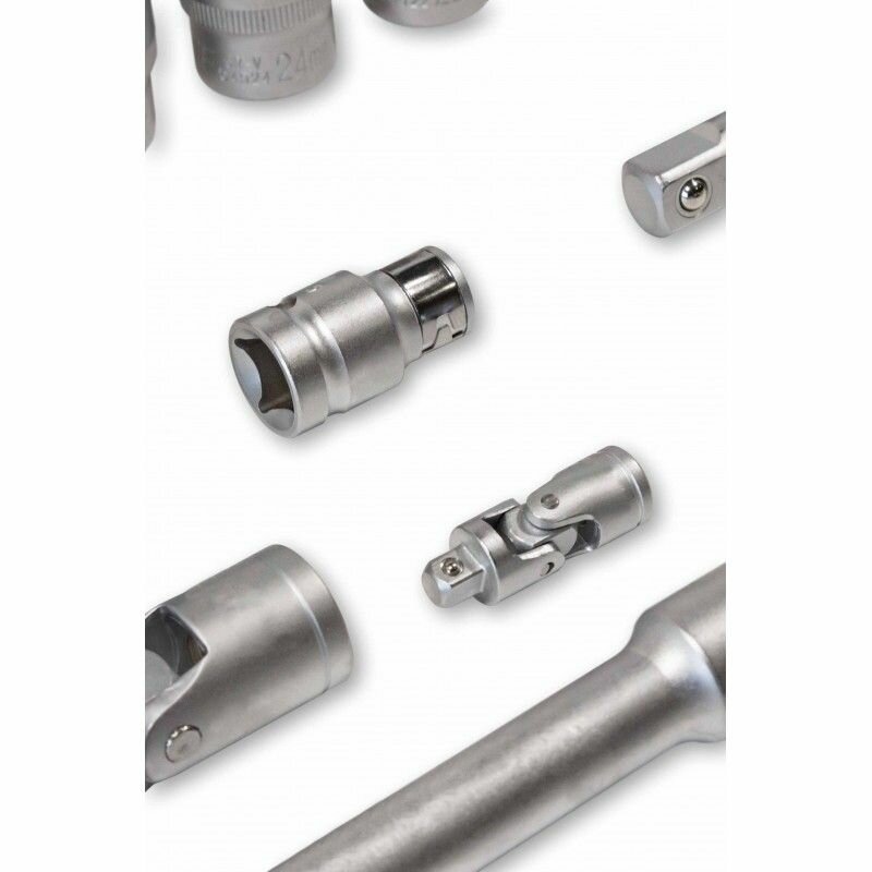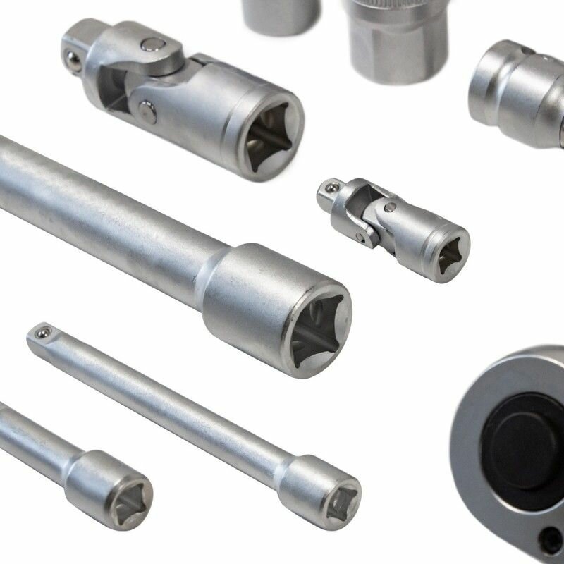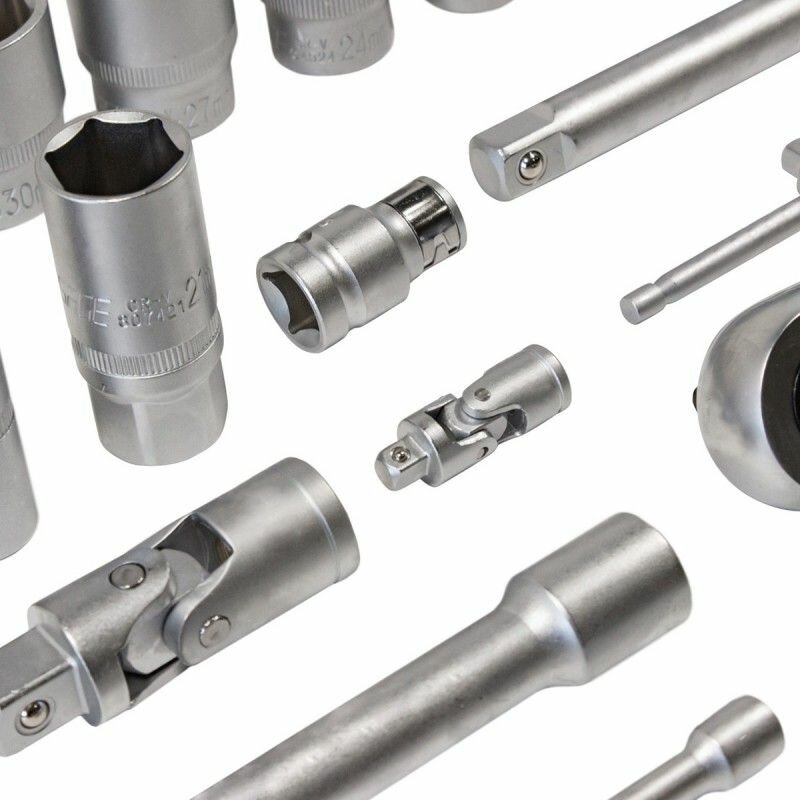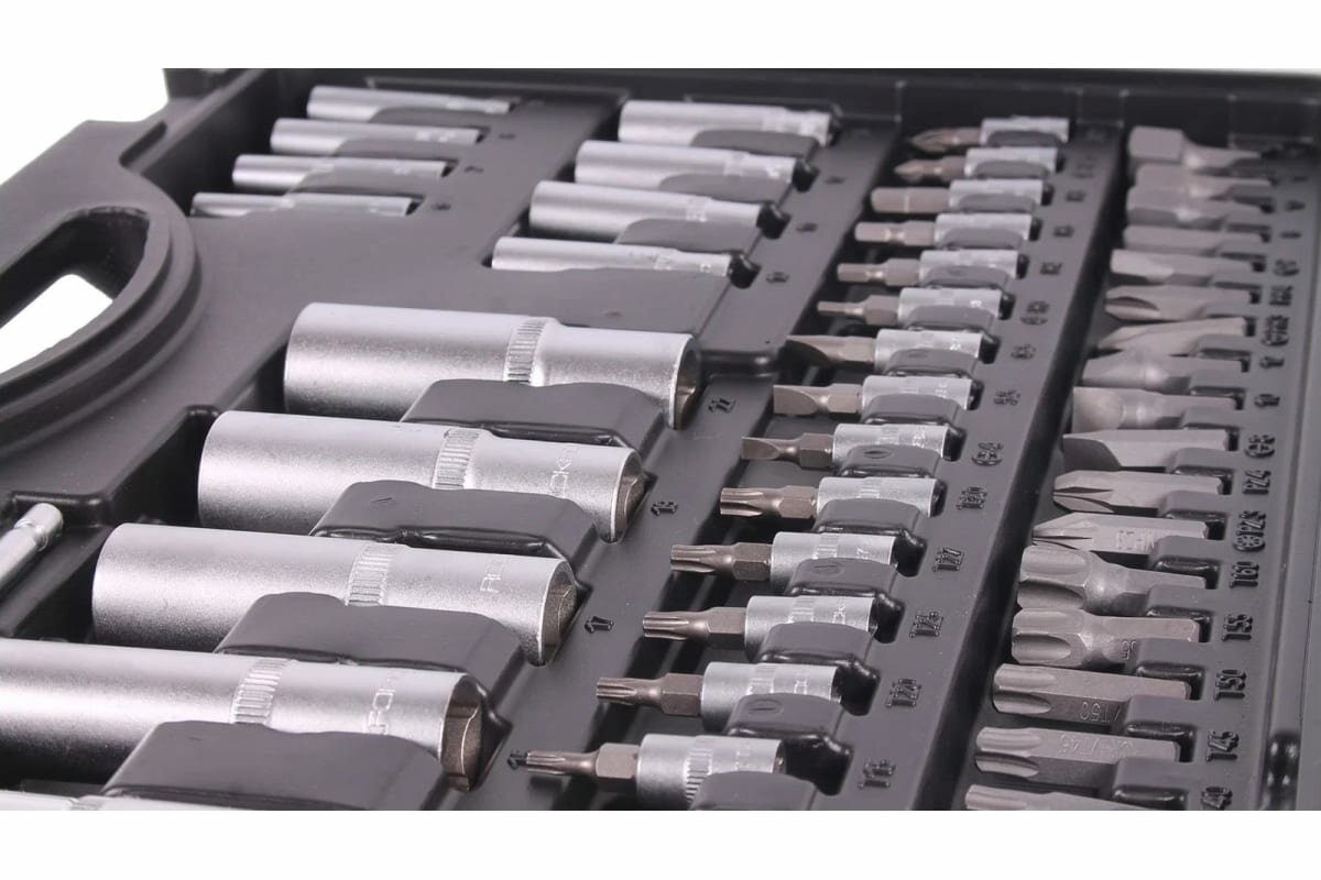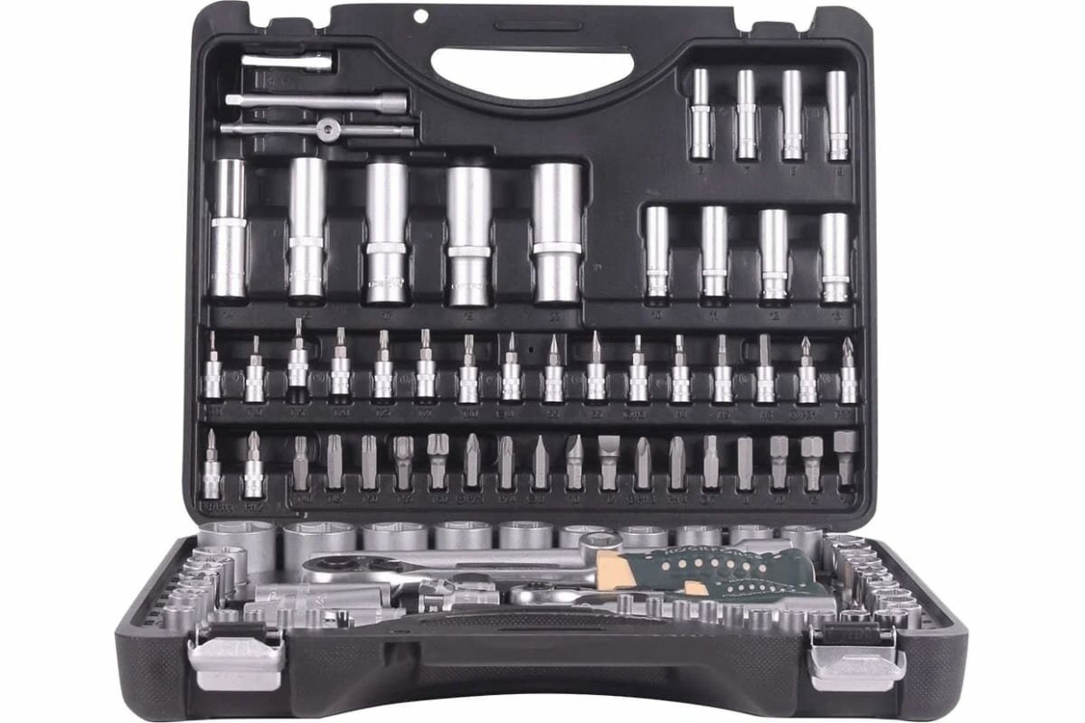 | Дополнительная информация | трещотка 1/4"; рукоятка 1/4" длиной 150 мм; вороток Т-образный 1/4" длиной 115 мм; удлинители 1/4" длиной 50, 100 мм; удлинитель гибкий 1/4" длиной 145 мм; кардан шарнирный 1/4"; трещотка 1/2"; удлинители 1/2" длиной 125, 250 мм; кардан шарнирный 1/2"; адаптер усиленный с отверстием с 3/8"(F) х 1/2"(M); битодержатель 1/2"(F) х 5/16"(F); |