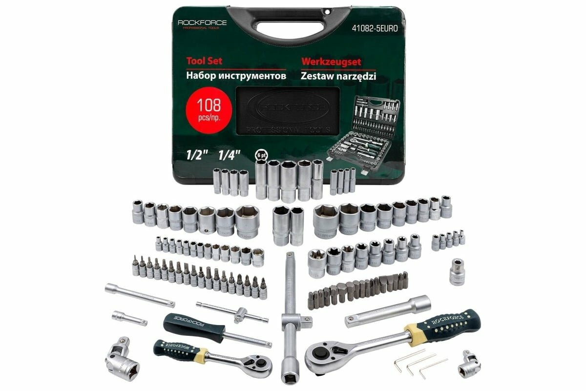 Набор торцевых головок и вставок ROCKFORCE RF-41082-5EURO, 108 предметов, 6-гранные, 1/2" и 1/4" DR