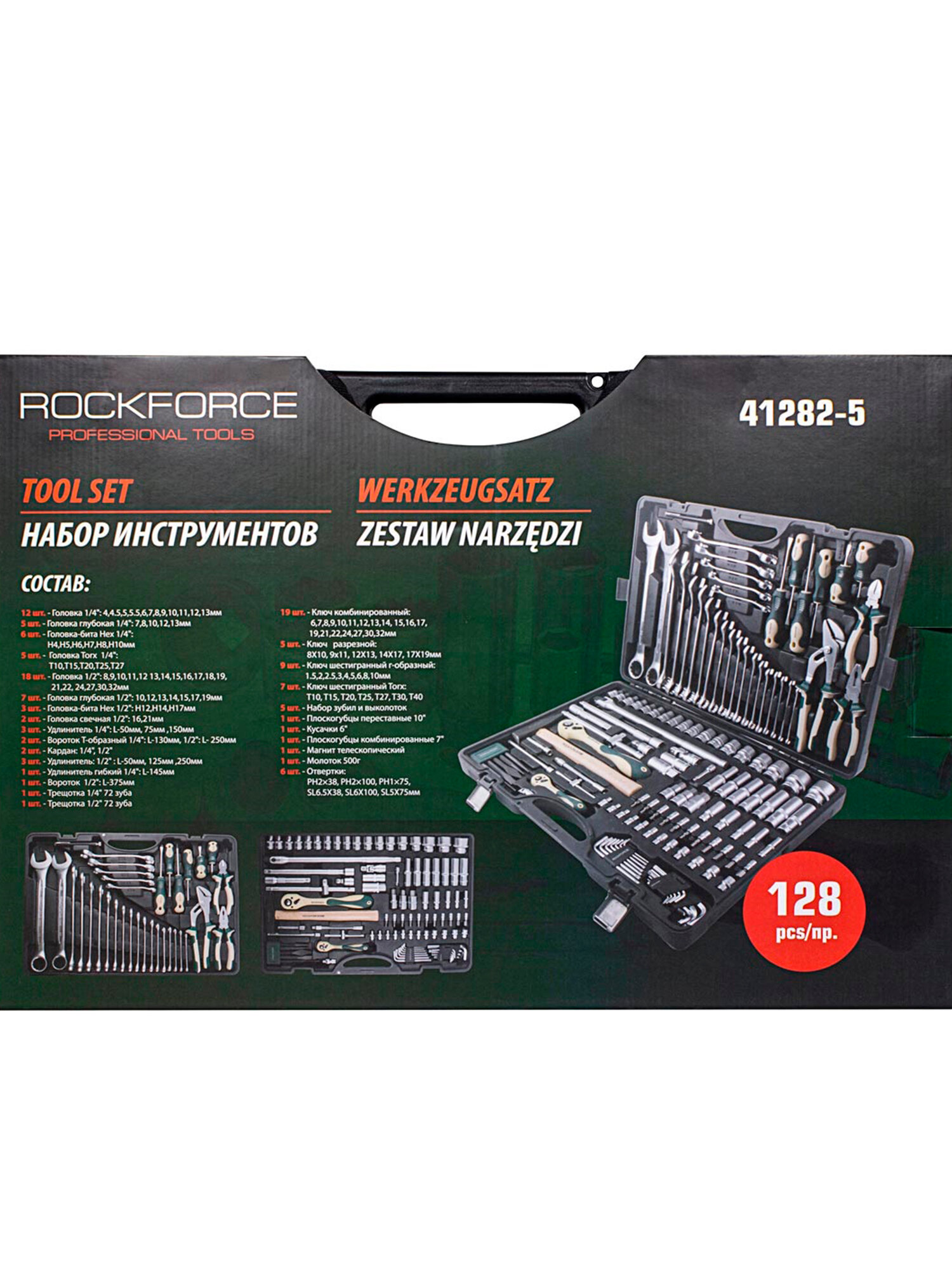Набор инструментов RF-41282-5: 1/2"&1/4"DR с 6-гранными головками 128пр. ROCKFORCE