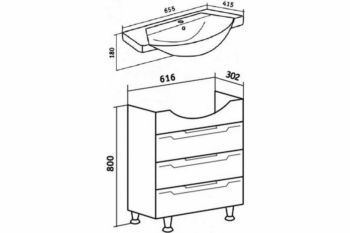 Тумба Руно Runo верона 65 600х314х800 с умывальником Элегант 65