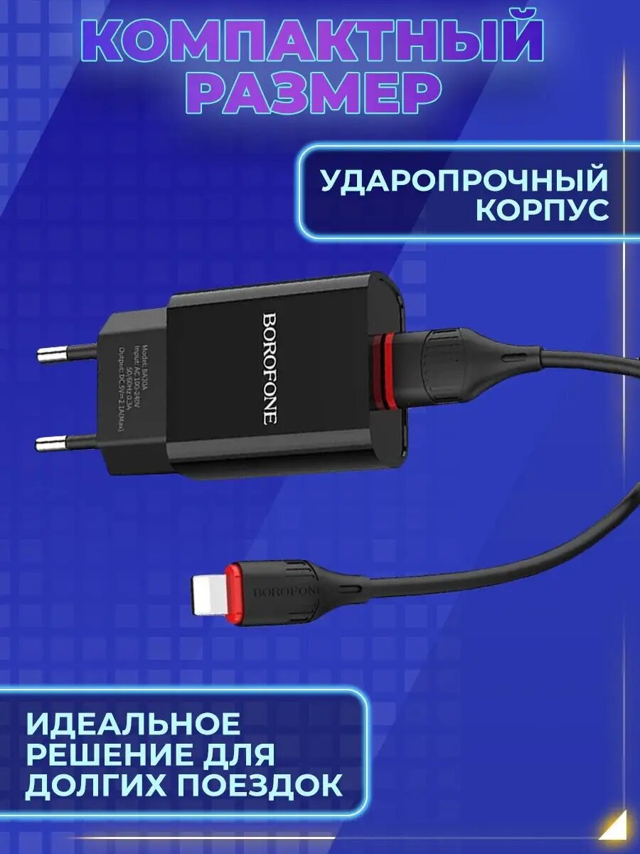 Быстрая зарядка для iPhone с кабелем Lightning в комплекте / адаптер питания для телефона, смартфона / сетевое зарядное устройство / BOROFONE BA20A