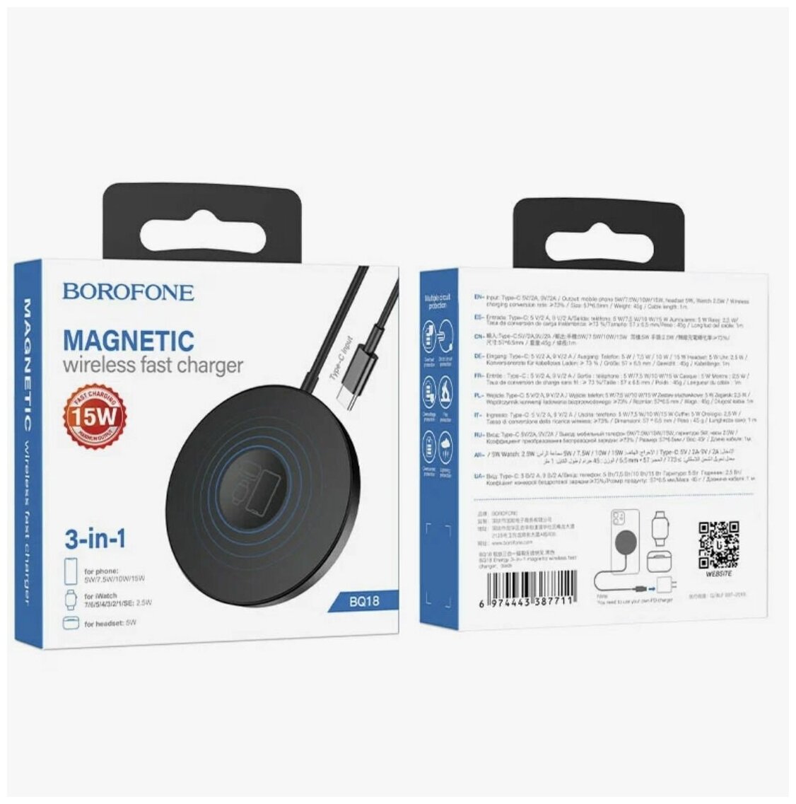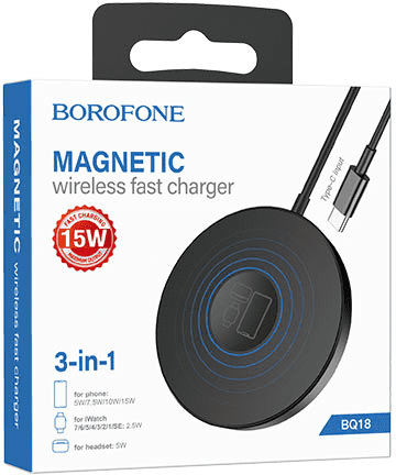 Беспроводное магнитное зарядное устройство Borofone BQ18 3in1 15W, черный