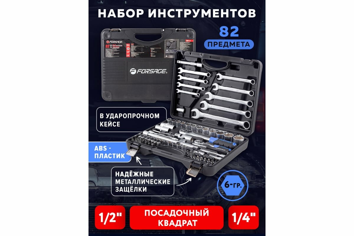 Набор инструментов 82 предмета 1/4, 1/2, 6 гранный(4-32мм) FORSAGE F48215