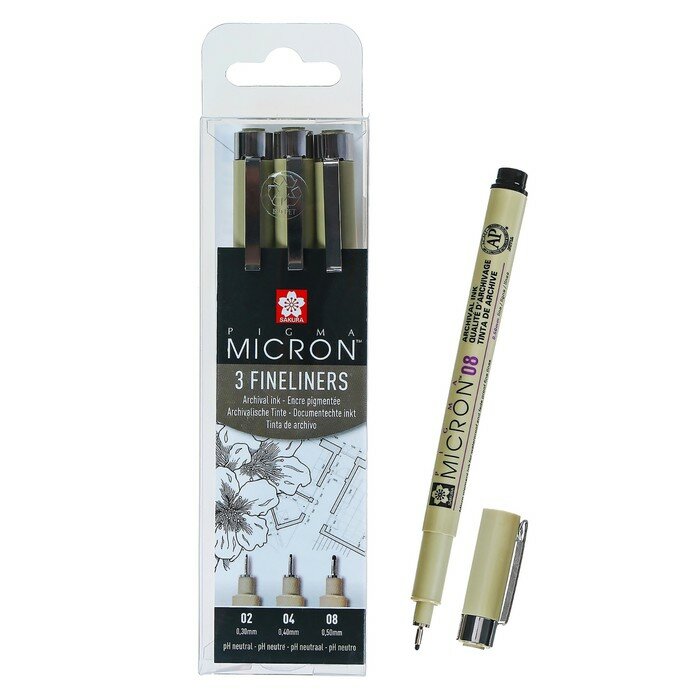 СохранитьНабор линеров Pigma Micron, капиллярные ручки 3 шт. (0,3 мм., 0,4 мм., 0,5 мм.), цвет чернил: черный интересное: