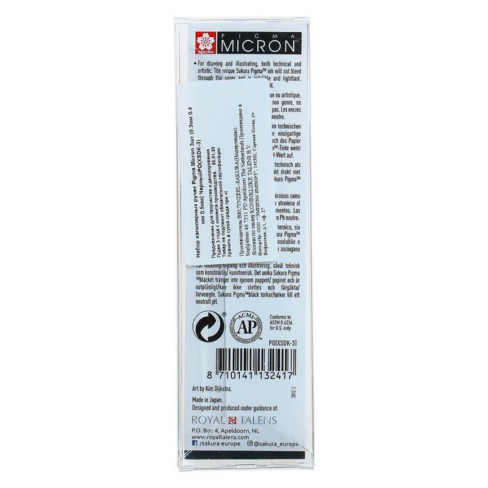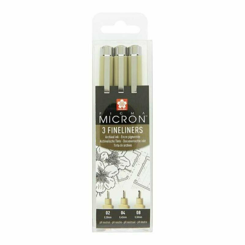 Набор капиллярных ручек Sakura Pigma Micron, 3 штуки (0.3 мм, 0.4 мм, 0.5 мм,) цвет чернил: черный