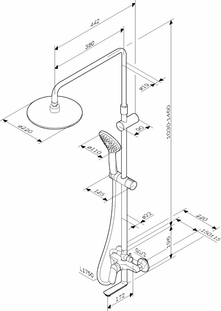 | Дополнительная информация | диаметр верхнего душа 22 см; диаметр лейки 11 см |