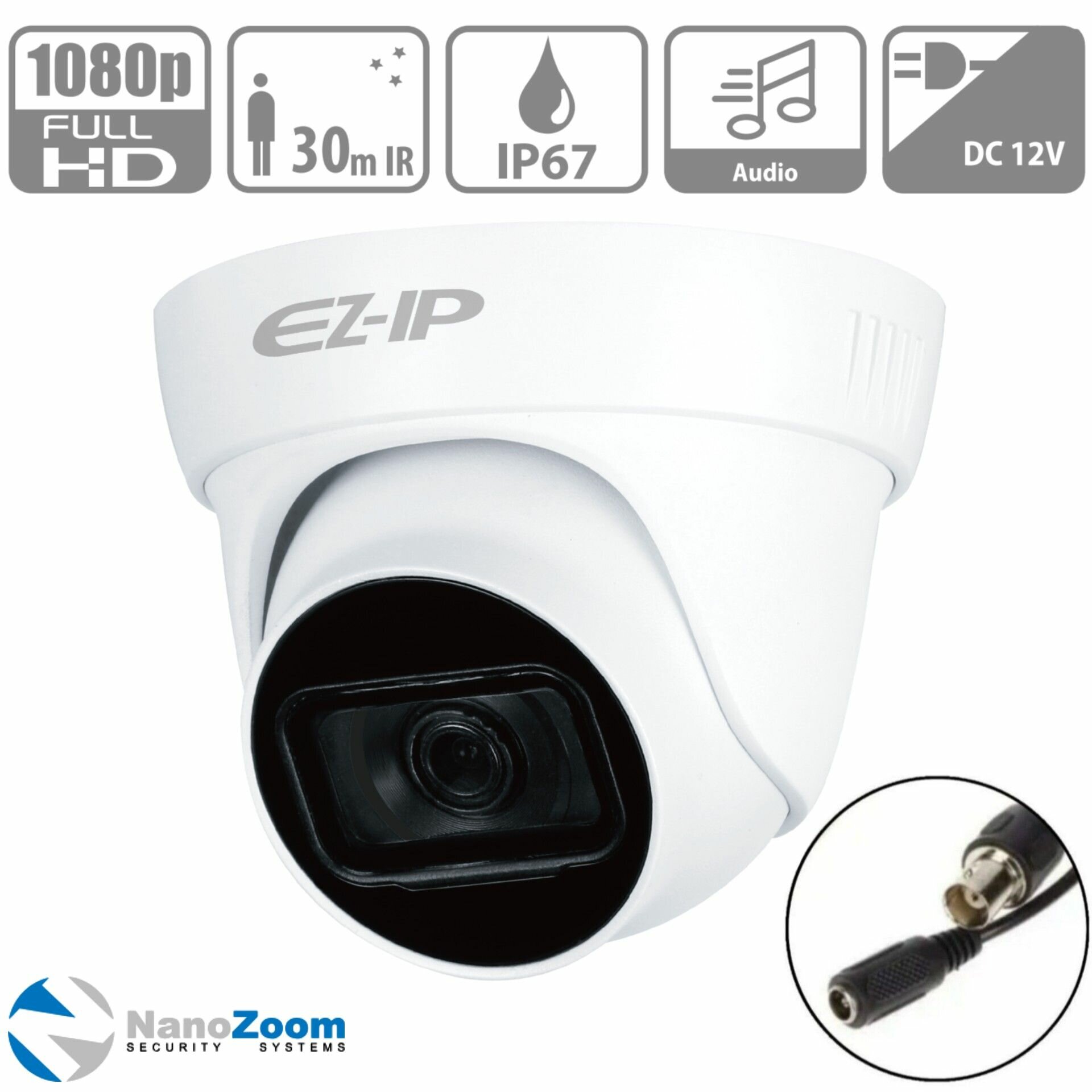 EZ-IP Видеокамера HDCVI купольная, 1/2.7" 2Мп КМОП, Звук с передачей по коаксиалу,25к/с при 1080P, 25к/с при 720P2.8мм фиксированный объектив30м ИК, Smart IR, ICR, OSD, 4в1(CVI/TVI/AHD/CVBS)IP67, м
