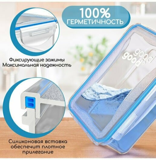 Контейнер объемом 1500 мл из жаропрочного стекла с герметичной крышкой из пластика