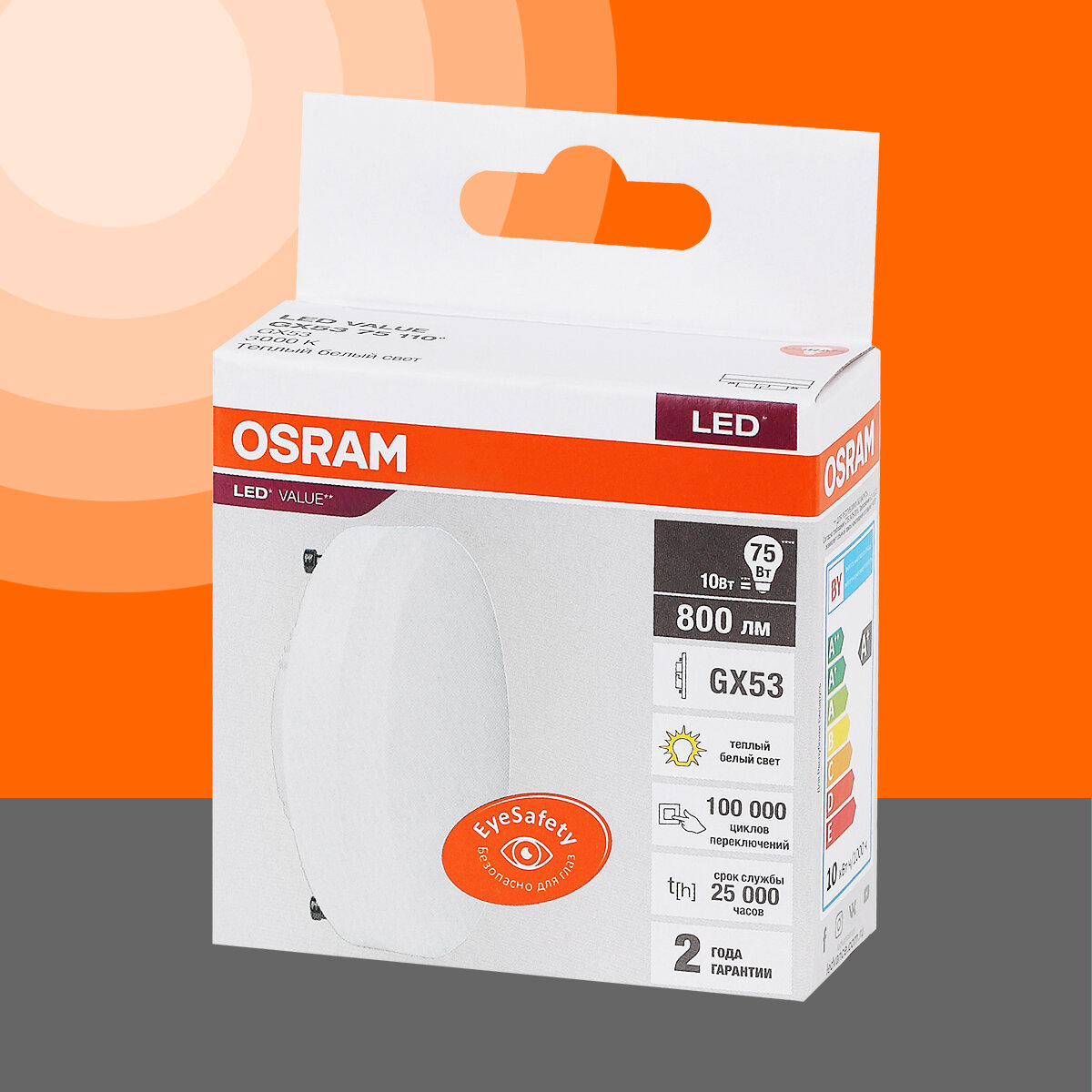 Лампочка светодиодная OSRAM LED Value GX, 480лм, 6Вт, 4000К (нейтральный белый свет), Цоколь GX53, колба GX
