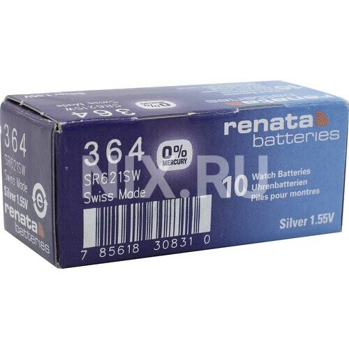 Renata 364 (SR621SW) | 1.55 Вольт, Оксид Серебра (silver oxide) батарейки - 10шт.