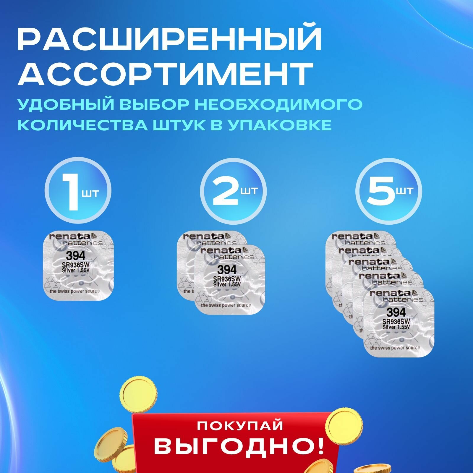 Батарейка Renata 377 (SR626W): Упаковка 10 шт.